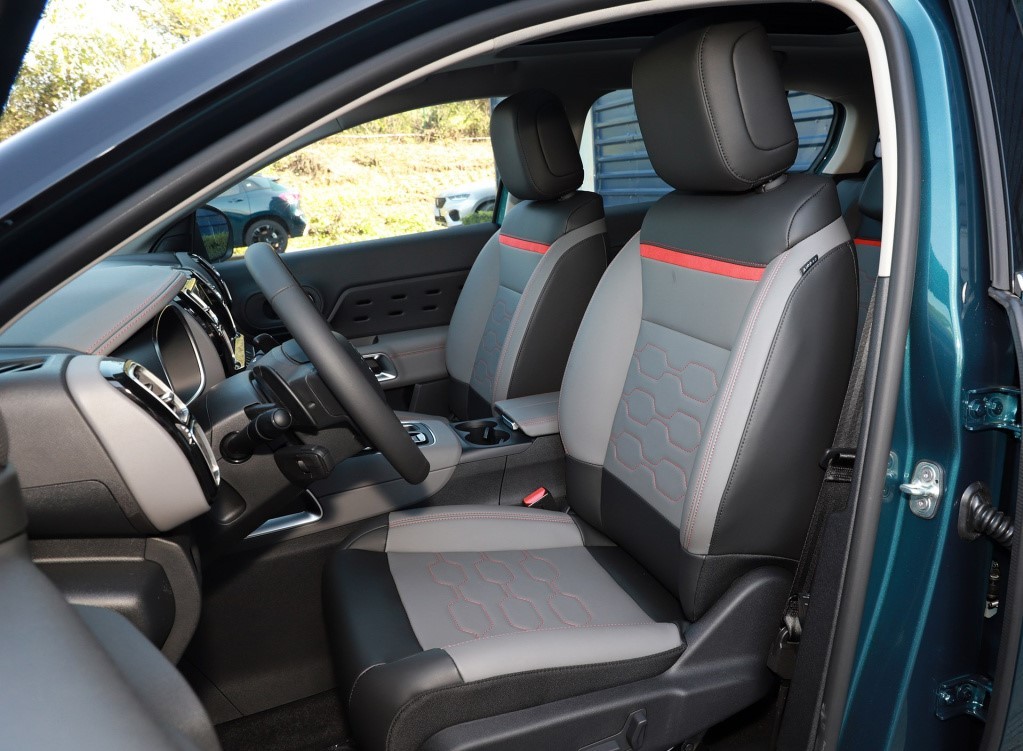 天逸C5前排座椅表面带有多边形纹路设计,再搭配上拼色座椅,看上去就显得相当具有个性。乘坐舒适性方面中规中矩,靠背以及侧向支撑都比较到位,唯独座垫厚度略显单薄,并且填充物柔软度还有改善空间。功能方面,这台试驾车是1.6T的中配车型,官方售价18.07万元,但只给主驾驶配备了电动调节,并且连基本的腰部支撑也没有,不得不说,法系车还是一如既往的吝啬啊。