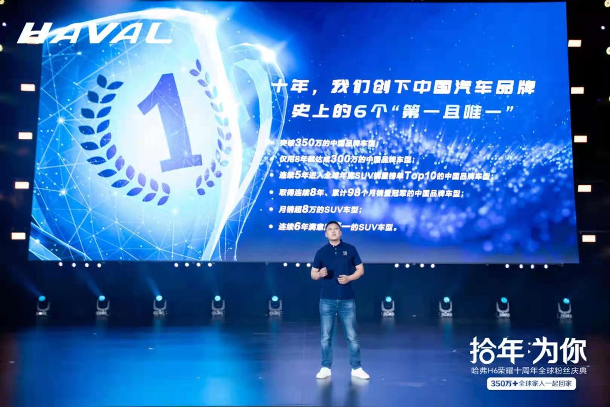 十年弹指一挥间,说短很短,说长也很长,因为十年可以树木,也可以成就一段奇迹。荣耀十年,哈弗H6就用10年98个月SUV销量冠军、350万+销量谱写了属于自己的奇迹。所以当庆典一开始哈弗品牌总经理李晓锐就用“我们是自己的英雄,我们就是超神一代”发出了哈弗H6的最强音。正如这场主题“拾年,为你”哈弗H6的粉丝庆典活动,不仅是对哈弗H6350万+车主粉丝的真情告白,也是哈弗H6这十年来对为用户造车理念的坚持,更代表着哈弗H6在未来十年也将持续以用户为中心的决心。