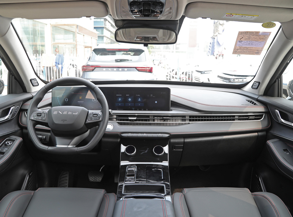 新车还是延续了现款车型的外观设计,前脸采用了分体式的设计,上部采用的是横向的格栅,内部配备了“EXEED”的LOGO,连接上两侧狭长锐利的矩阵式LED大灯,拉伸了前脸的视觉宽度。下部采用的是梯形的大尺寸进气格栅,内部采用三根镀铬饰条进行装饰,搭配上两侧的导流槽,看起来非常犀利,提升了运动感。