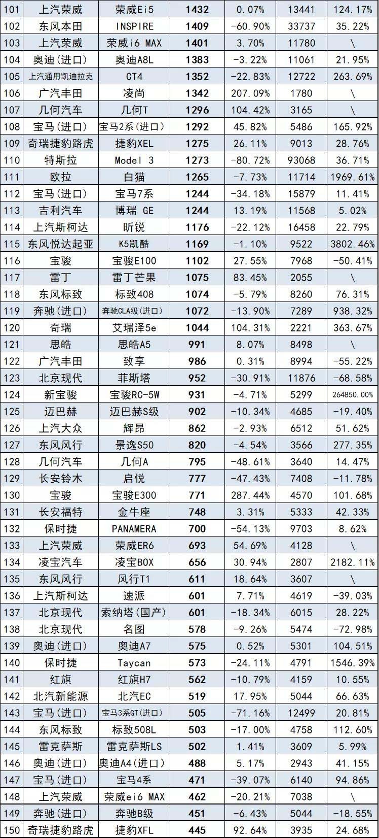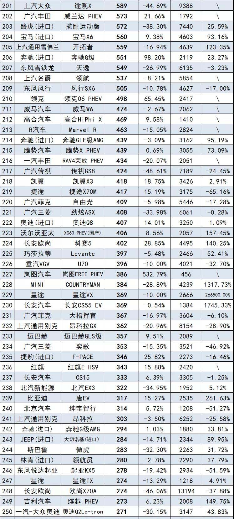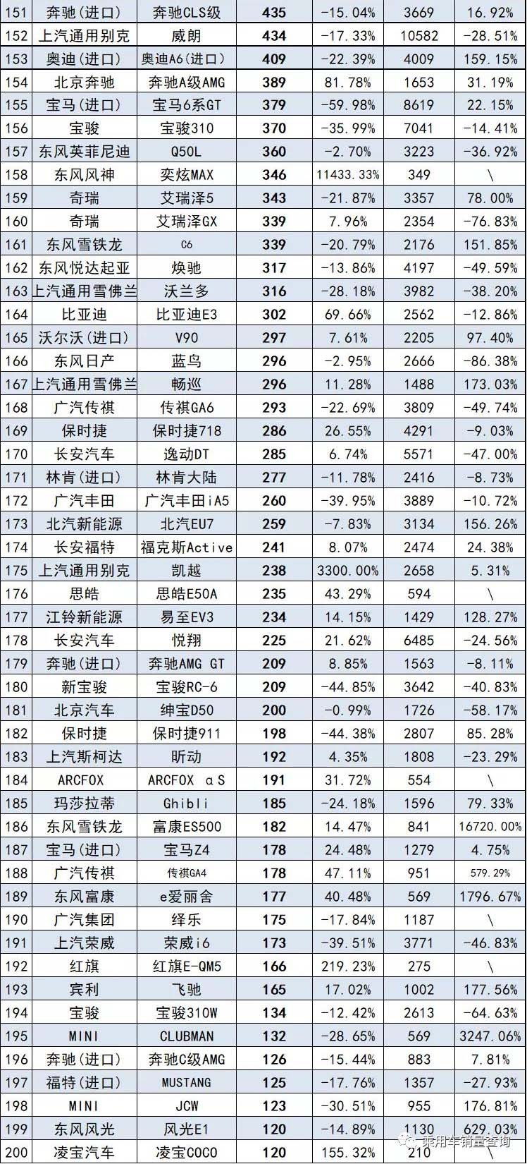 与其他销量榜单最大不同的是,上险量榜单更为权威,也更接近上牌量数据,最重要的是其含进口车,所以也是最全榜单。这意味着目前在国内有销售的新车也应有尽有了!