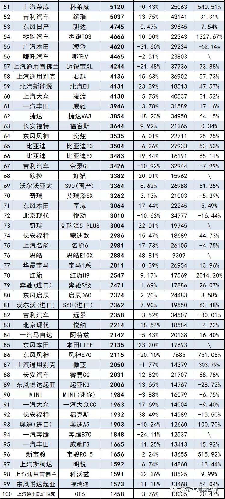 PS:以下上险量统计数据来源乘用车销量查询,与乘联会数据不尽相同!