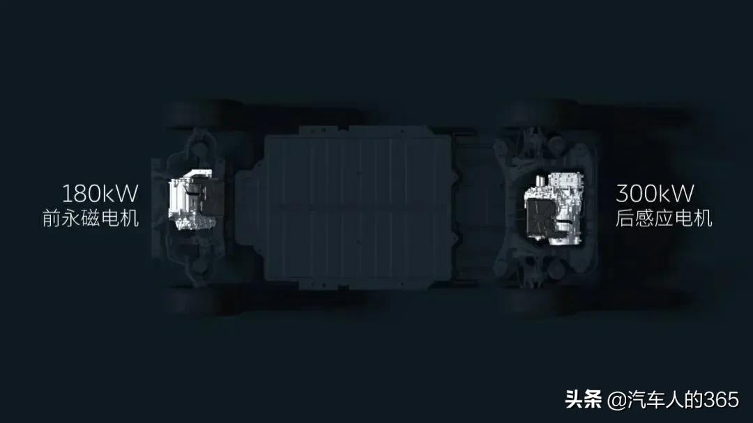 动力方面,蔚来ET7搭载前永磁电机+后感应电机组成的双电机,其中前永磁电机最大功率180kw,后感应电机最大功率300kw,综合系统最大功率480kw,峰值扭矩是850N·m。这样双电机组合可以达到零百加速3.9秒。