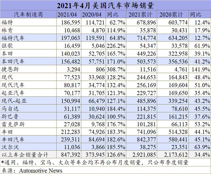 4月份,国内汽车市场开始陷入传统淡季状态,整体销量不太景气。不过这次换美国汽车市场火热 !