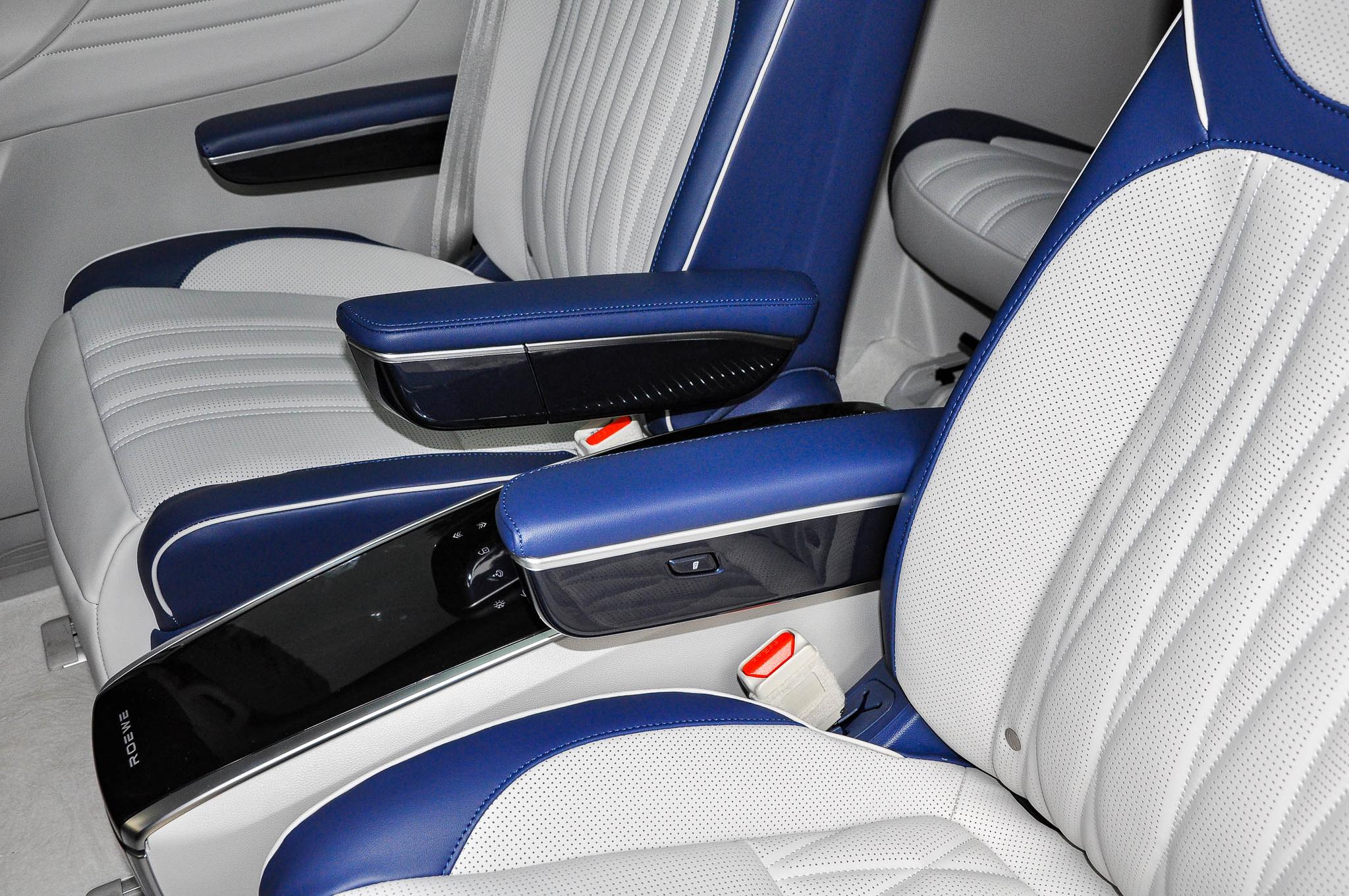 第二排座椅毫无疑问配备了航空式的头等舱座椅,整体硬件规格非常高,表面为Nappa真皮座椅,手感温润细腻,档次感很强,座椅可供调节的选项有很多,搭配上抬起角度适中的腿托,加热通风等功能,舒适度完全不用担心。