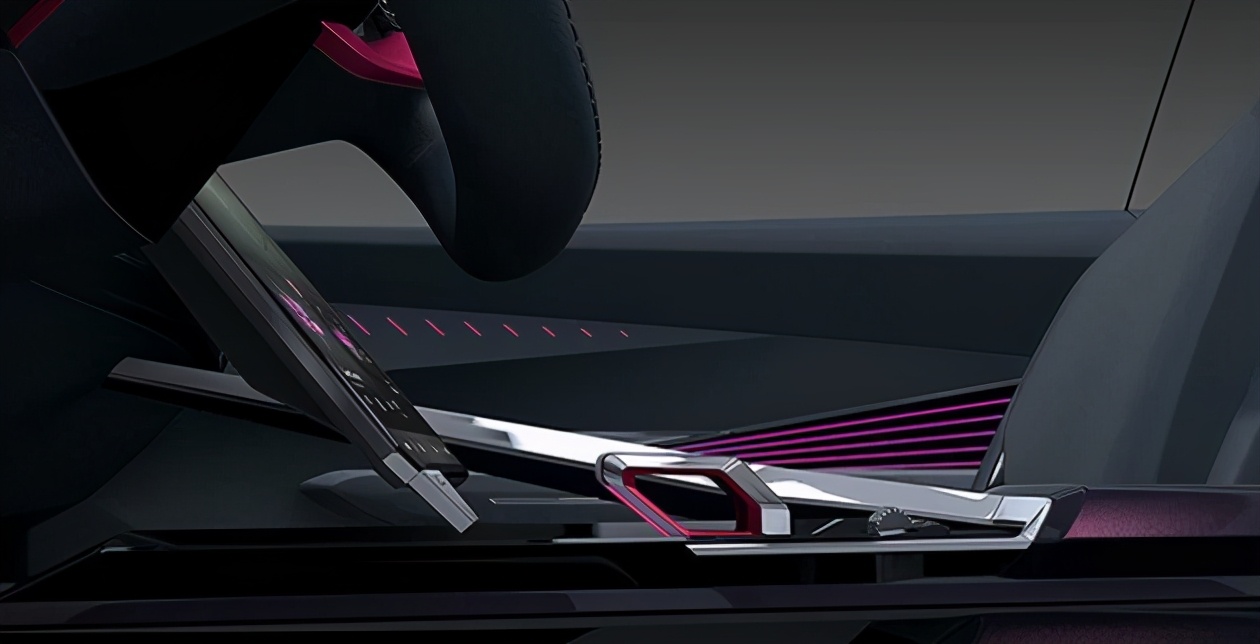 来看看档把区域这一块,新车采用了一种模拟战斗机的档把造型设计,档把采用了镂空的设计风格,手指可穿过镂空区域将整个档把握住,就这一块极具运动且激进的档把设计,小编表示可以玩一年。档把下面还有一块模拟粗糙的运动模式切换滚轮,虽然外观长得像一台纯电跨界SUV,但内饰的设计更像是一台主打高性能的燃油车。
