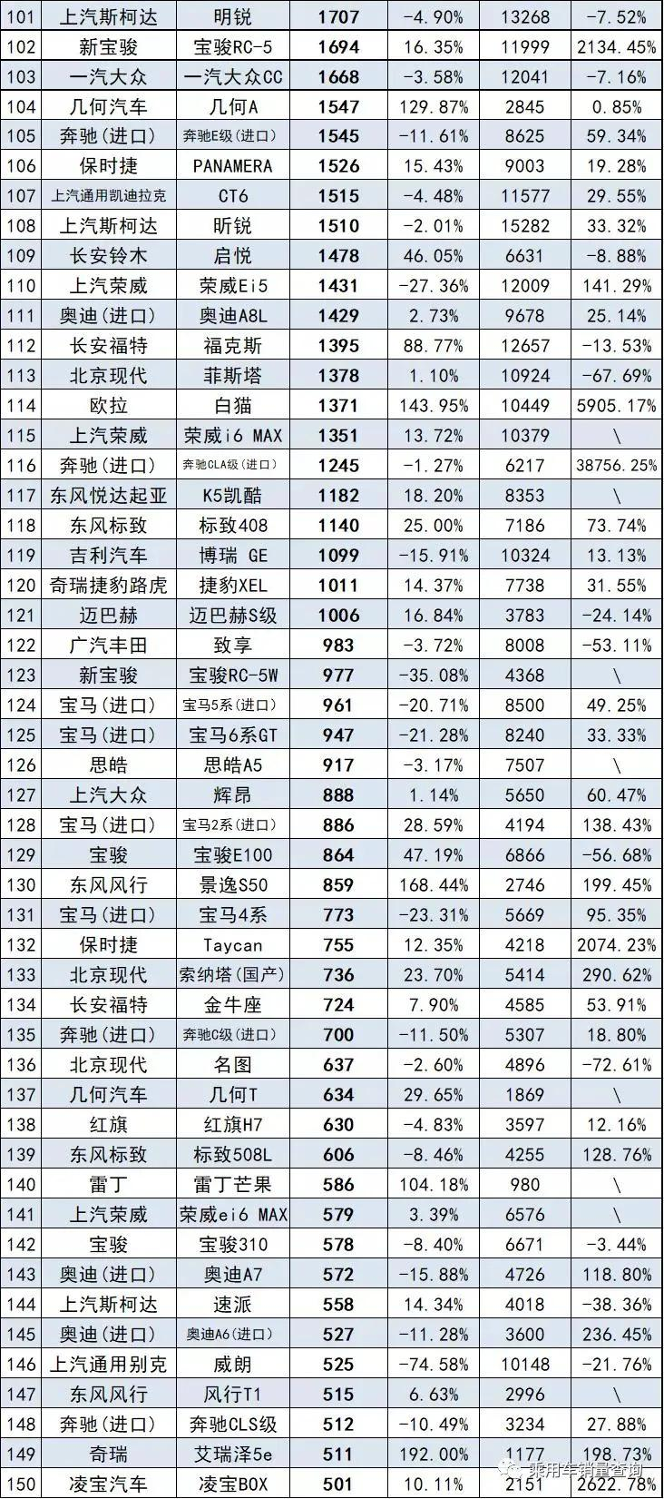 与其他销量榜单最大不同的是,上险量榜单更为权威,也更接近上牌量数据,最重要的是其含进口车,所以也是最全榜单。这意味着目前在国内有销售的新车也应有尽有了!