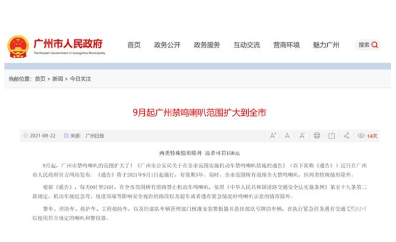从上述的规定可以看出广州市对交通噪音污染控制的决心,但很多司机看到这条规定一出就非常纳闷,在一些地方的特定时间禁止鸣喇叭就算了,现在变成全市全天禁鸣喇叭,真的是有苦说不出。因为从司机自身的角度出发,他们觉得一般没事都不会一直乱按喇叭的,就算有那也是极少数素质低下的人和一些“怒路症”的司机才会这样做,大部分都是需要按才会按。